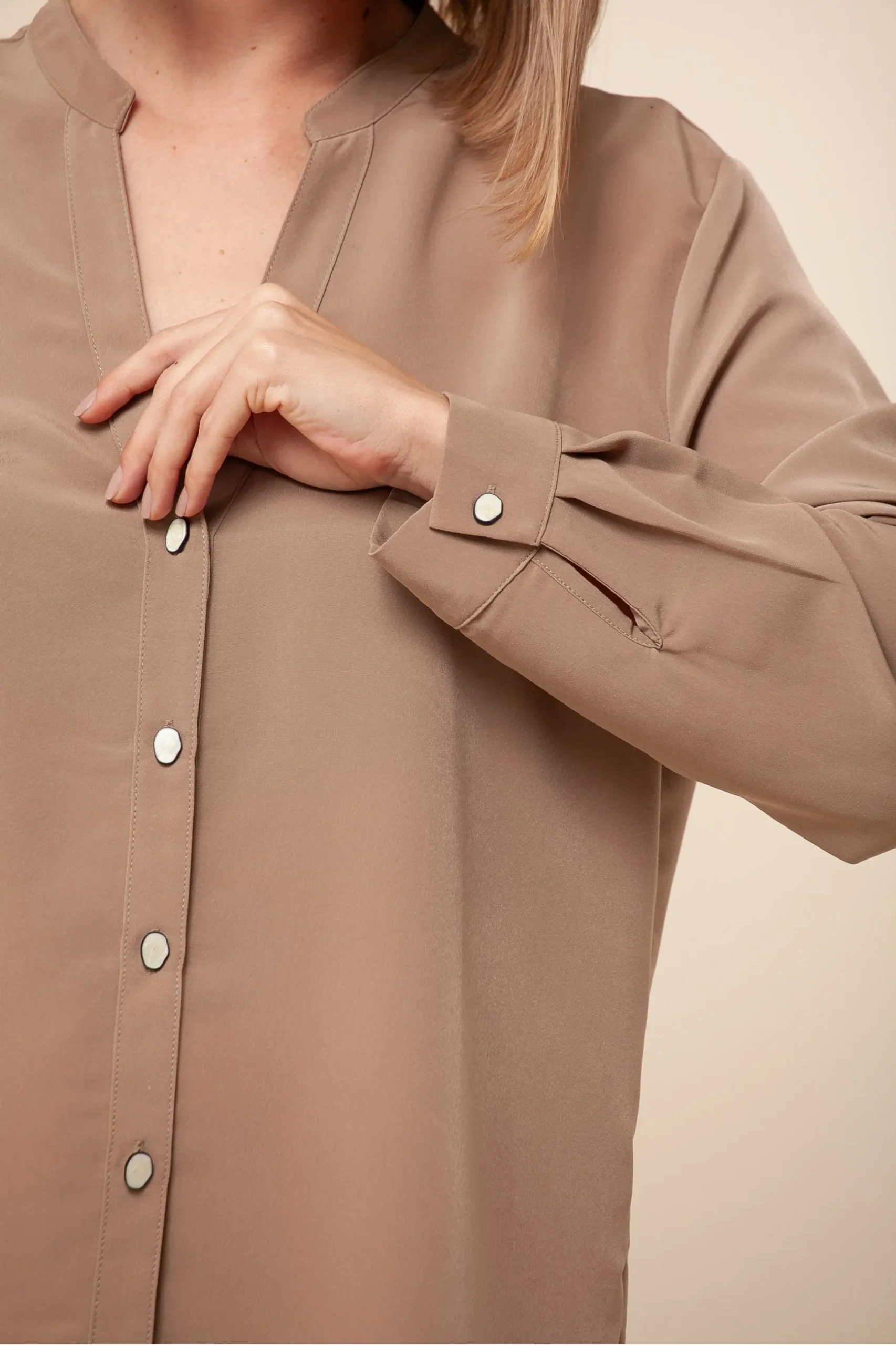 Camisa Gola V Botões BEGE