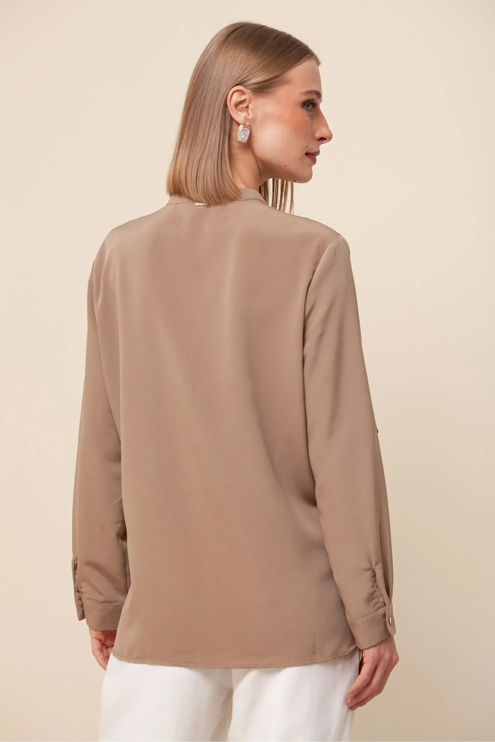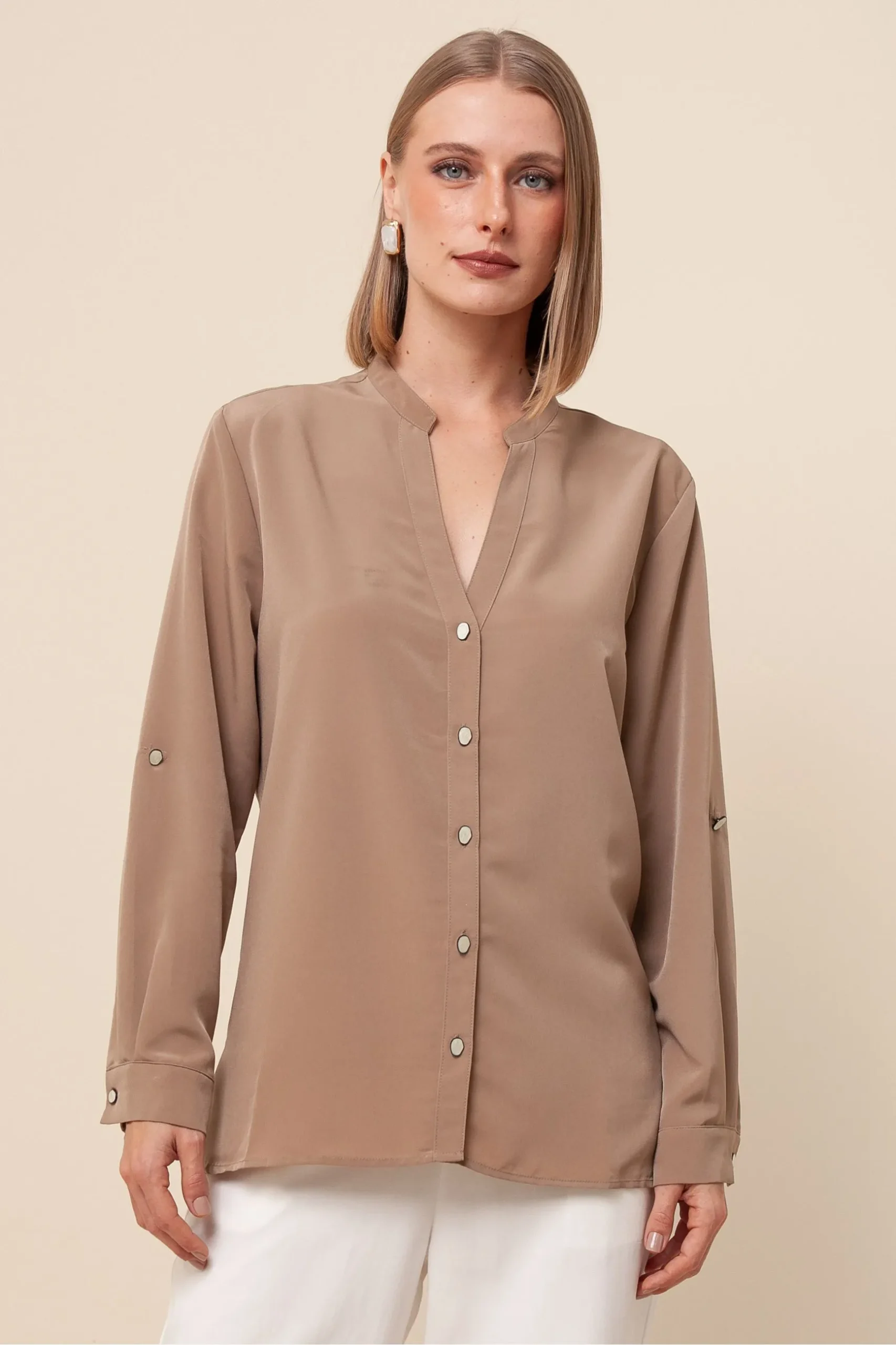 Etiquetas: botões de madrepérola, brilho sutil, camisa de qualidade, camisa elegante, camisa leve, camisa manga longa, camisa para eventos, camisa para trabalho, camisa sofisticada, camisa versátil, crepe acetinado, gola V, look casual chic, look sofisticado, moda atemporal, moda feminina